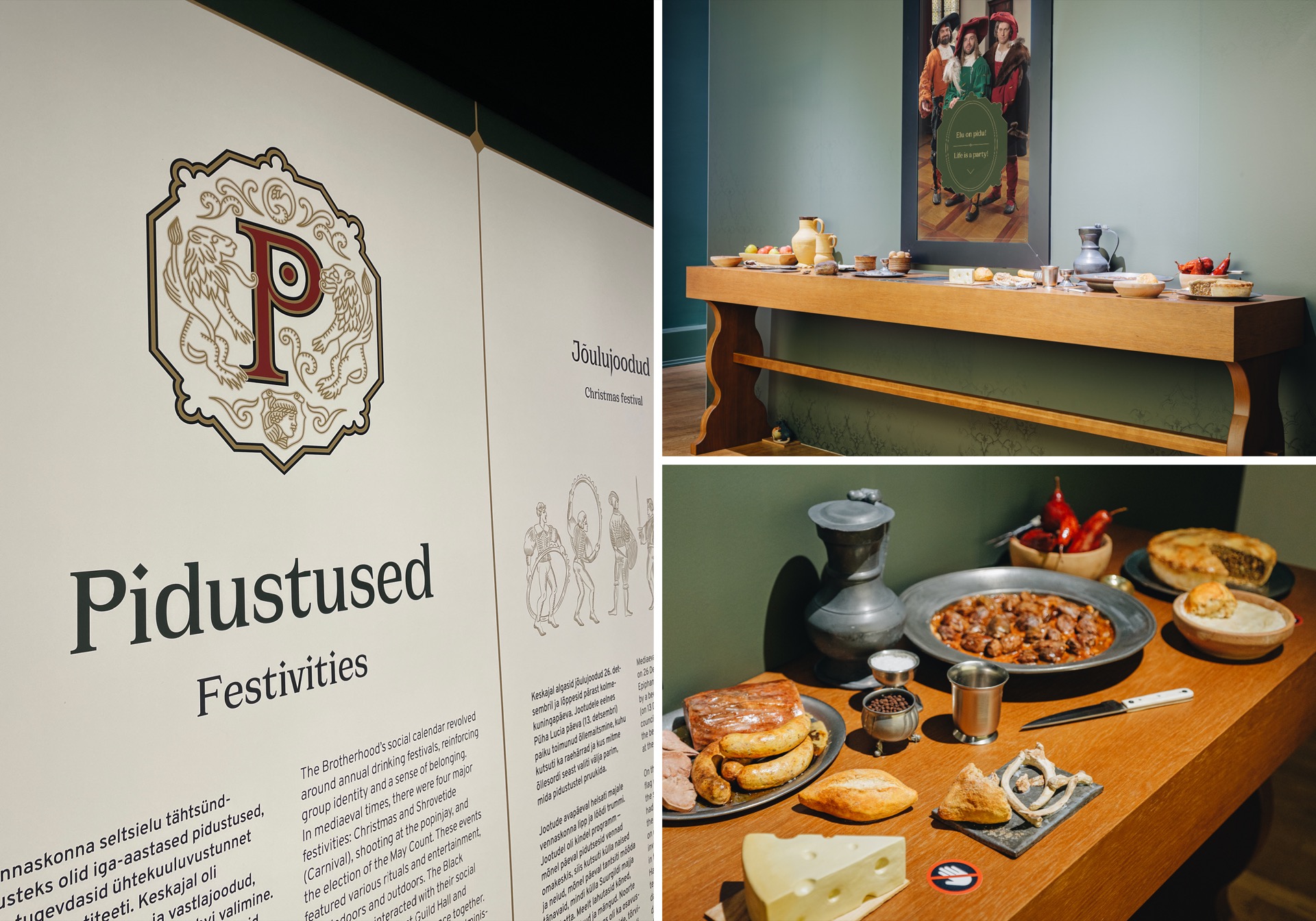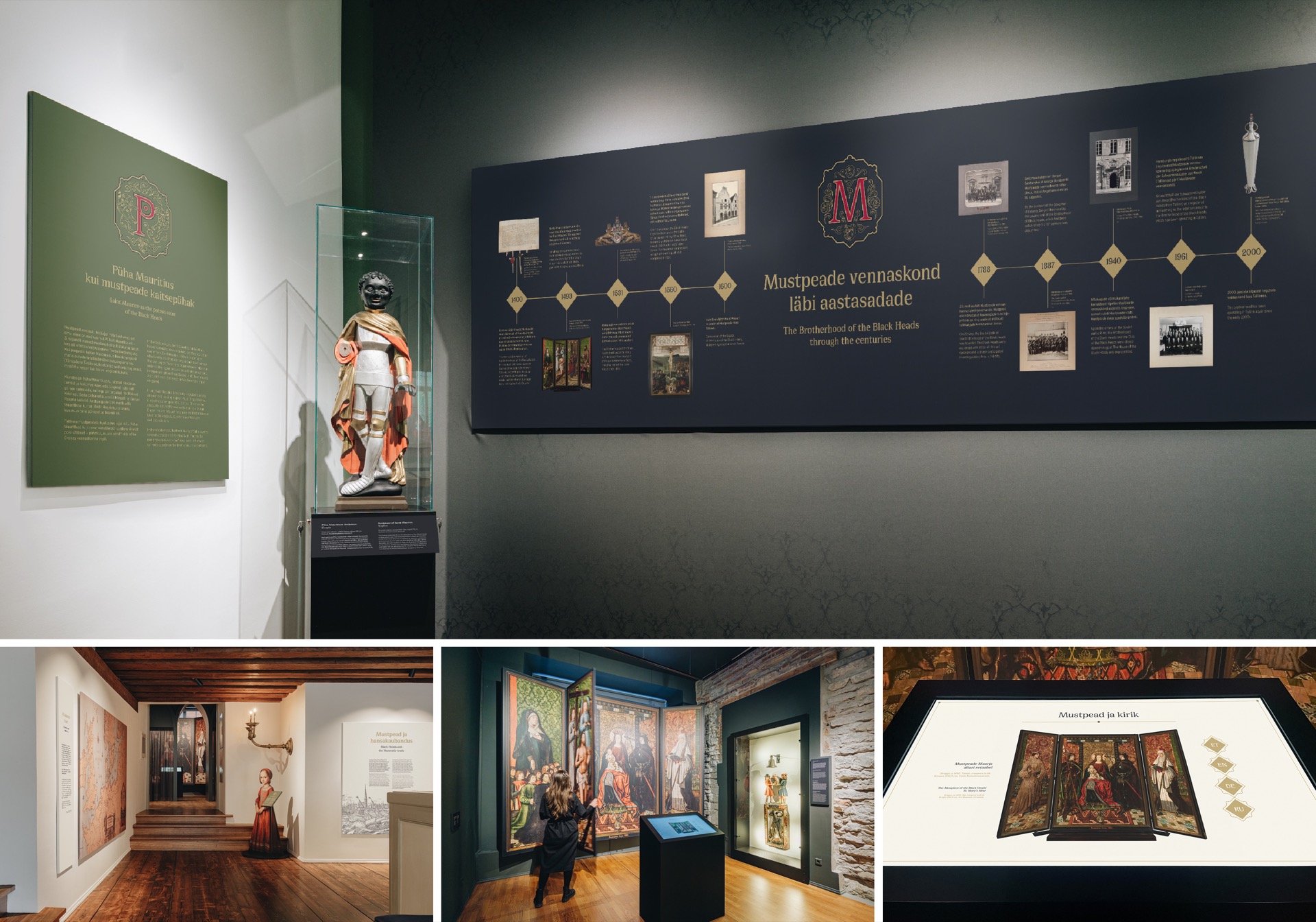 Mustpeade vennaskonna värvikast 625-aastasest ajaloost rääkiv näitus haarab külastaja noorte kaupmehesellide seltskonda. Nad räägivad sinuga, nad paluvad endale peol ameteid määrata, lubavad sul endale süüa pakkuda ja lasevad sul otsustada, kes võidab papagoilaskmise. Näitus rikastest ja ilusatest on just selline nagu elu – mitmekülgne, lõbus ja mõtlemapanev.