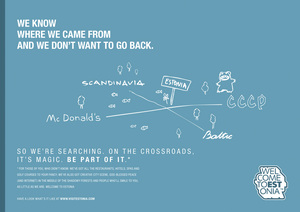 Reklaam on suhtlev ja eristuv, mis keskendub praeguse Eesti muutustele, millest kutsutakse osa olema. Tärnide all tutvustatakse Eestit turisti vaatenurgast.
